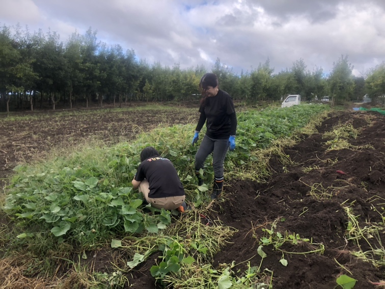 秋晴れに恵まれた本日、我が社のオーガニックファームで芋掘りを行いました。